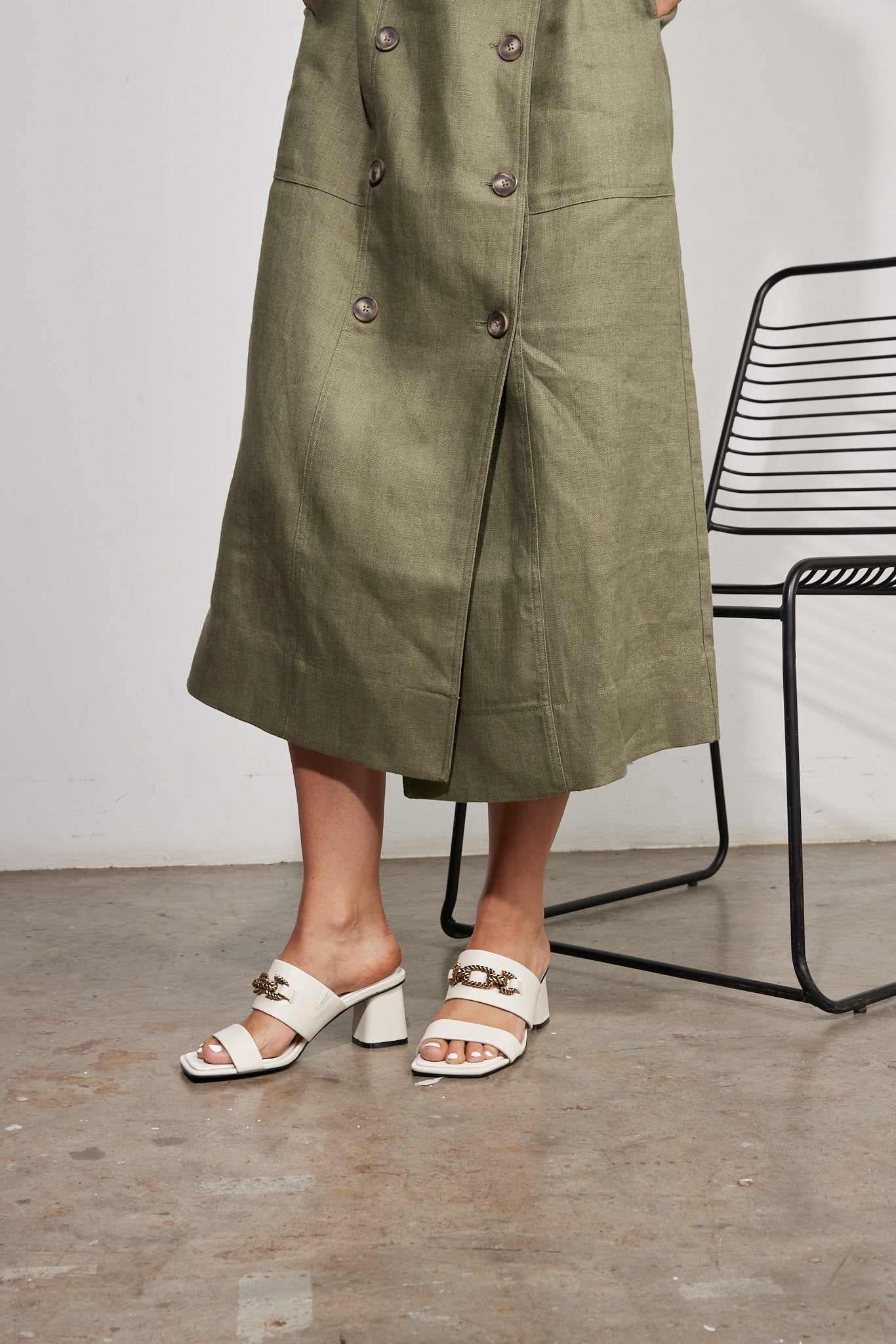 The CASSATT mid block heel effortlessly combines comfort and sophistication. The block heel is ideal for everyday wear and the eye-catching brass hardware provides an elegant touch.